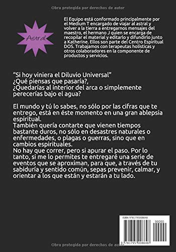 “Si hoy viniera el Diluvio Universal” ¿Qué piensas que pasaría?, ¿Quedarías al interior del arca o simplemente perecerías bajo el agua?El mundo y tú lo sabes, no sólo por las cifras que te entrego, está en éste momento en una gran ablepsia espiritual.También quería contarte que vienen tiempos bastante duros, no sólo en desastres naturales o enfermedades, o plagas o guerras, sino que en cambios espirituales.No hay que correr, pero si apurar el paso. Por lo tanto, si me lo permites te entregaré una serie de eventos que se aproximan, para que, a través de tu sabiduría y sentido común, sepas prevenir, calmar, y orientar a los que están y estarán a tu lado.